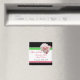 It was a bit smaller than expected, but I was too excited to check dimensions. The product itself send well printed though the grey text is a bit paint. Magnet worked perfectly on my fridge.