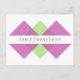 Modern and chic Geometric Triad Wedding Table Number Postcard featuring a stylish triangle design in radiant fuchsia and lime green. Easy to customize, this simple yet elegant design can be personalized by adding the appropriate table number(s) in the text field provided. Click "Customize It" to find more personalization options.