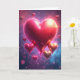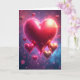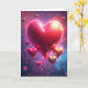 Designed with a luminous digital look, the artwork centers on a large heart that feels almost liquid, glowing from within in deep fuchsia ❤️. Tiny sparkling specks scatter across its rounded surface, like glittering dust catching a strong inner light. Around it, smaller hearts float in a loose cluster, varying in size and shifting in color from rich crimson to warm, burnished gold, as if drifting closer in a gentle embrace. The arrangement creates a sense of closeness and romance through the way the hearts seem to rise together, lightly overlapping and leaning toward the center. A short line of text sits near the top in a soft light tone, while a second line rests near the bottom in a matching color, both kept simple so the glowing shapes stay in focus 🌼. Behind everything, the background fades from deep twilight blue into saturated purple, dotted with soft, out-of-focus light circles that resemble distant lanterns. Bright highlights and subtle flare-like streaks radiate from the central heart, with the sharpest glints concentrated along its upper curve.