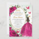 Fuchsia Hot Pink Floral Princess Gold Quinceañera Invitation