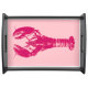 Serving tray patterned in a digital sketch of a Lobster in deep fuchsia pink on a pastel pink background