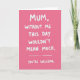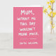 This greeting card features a hot pink background with high contrast that immediately draws the eye. Large white marker-like lettering sits in the center and runs downward in stacked lines, giving the message a confident, cheeky rhythm. The wording reads, “MUM, WITHOUT ME THIS DAY WOULDN’T MEAN MUCH. YOU’RE WELCOME.” with a dashed line and a few dots creating a teasing pause, like a kid grinning up at a parent ❤️. There are no characters or scenery, but the playful spacing and uneven edges of the letters suggest a close, joking bond, like a warm nudge between family members. The main text is all uppercase, with the first word near the top and the final “YOU’RE WELCOME.” landing lower, making the punchline feel timed. The white text sits sharply against the solid pink field, and the small dash-and-dots break appears mid-message like a beat before the laugh 🌼. The background stays flat and uninterrupted, while the white strokes vary slightly in thickness, leaving a subtly textured look across the centered vertical layout.