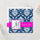 Fuchsia Navy Blue Damask Monogram Invitation