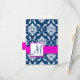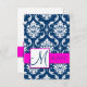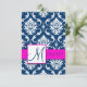 Fuchsia Navy Blue Damask Monogram RSVP Card