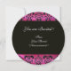 FUCHSIA PINK BLACK DAMASK CLOTH MONOGRAM Circle Invitation