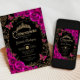 Fuchsia Pink Black Gold Quinceanera Invitation