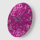 Fuchsia Pink Glitter Arabic Numbers Champaigne Large Clock