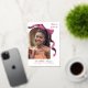 Pretty graduation invitation and announcement in one personalized with an arch-shaped photo adorned with a pretty ribbon with a bow in a fuchsia rose shade of pink and gold foil. Double sided graduation invitation with a white background and pretty pink bows. Girly 2 in 1 graduation announcement and invitation personalized with photo and the graduate's name in a beautiful golden script and her photo decorated with a bow in pink and gold foil.