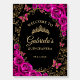 Fuchsia pink gold Quinceanera welcome foam board sign. Features, script font, gold butterflies, watercolor roses and tiara. Perfect for an elegant princess style glam celebration. Personalize with your own details. Printed Zazzle invitations or instant download digital printable template.