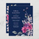 Beautiful Fuchsia Pink and Navy Blue floral wedding invitations.