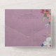 AVAILABLE WITH OR WITHOUT A QR CODE TO SCAN IN THE RSVP AREA. This design features watercolor fuchsia, blue, purple, pink, and white flowers on a vintage looking fuchsia background. The text appears in white oval frames. Personalized All-In-One invitations are a unique combination of both a beautifully printed custom invitation with an easy to tear off perforated RSVP postcard. And they are so easy to use! You simply fold, then seal the back flap with the three included clear stickers, and mail. And when your guests receive your custom invite, they just tear the perforated RSVP Card off and drop it back in the mail to you! This card was created by Simply Farmhouse Press.