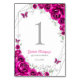 Fuchsia pink silver and white Quinceanera celebration table number cards. Features, script font, silver butterflies, watercolor roses and tiara. Perfect for an elegant princess style glam celebration. Personalize with your own details. Printed Zazzle invitations or instant download digital printable template.