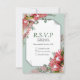 Fuchsia Protea's with Greens & Gold ribbons RSVP Card