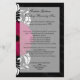 Cute and classy matching collection features black background with subtle swirling scrolls, and a vivid white swirl foreground design with bright pink fuchsia magenta gerbera gerber daisy flower. Perfectly elegant for a winter wedding, summer wedding or any season.
