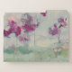 Fuchsia Treeline I by Jennifer Goldberger. Abstract depiction of fuschia tree-like shapes against a muted background, done in a paintstroke-like style.
