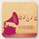 Quirky and unique Vintage Gramophone Coaster Set in dark pink featuring a silhouette of an old-fashioned gramophone and a cascade of musical notes on a digital art rendered paper background. This chic cork coaster set will protect your furniture with vintage flair and is perfect for any music lover. Easy to customize, simply personalize with the text of your choosing. Click on the "Customize It" button to find additional personalization options.