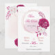 romantic fuchsia and white roses gold rose floral wreath save the date invitation