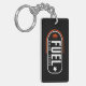 A FUEL Racing League keychain with a black background, racetracks, an orange crown, and a white star. It is the ideal present for everyone on your list, including yourself, your loved ones, friends, fellow employees, and more.