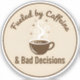 For those who run on coffee and questionable choices, this design says it all. “Fueled by Caffeine & Bad Decisions.” features a cozy coffee cup illustration with steam forming playful stars and swirls, paired with a fun script-and-sans-serif typography combo. Set on a creamy coffee beige background with dark brown text and soft white accents, this design feels warm, witty, and highly relatable. Perfect for coffee lovers, night owls, creatives, and anyone whose best ideas happen after the first cup.