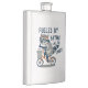 The product is a good size and came exactly as it was pictured. The lid is not attached to the flask, which could be dangerous on drunken nights... The print came out surprisingly well and looks very sharp. Would definitely recommend.
