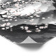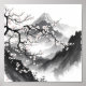 This piece captures the serene beauty of a Japanese landscape, blending traditional sumi-e ink wash techniques with delicate splashes of color. A majestic, snow-capped Mount Fuji stands in the distance, shrouded in misty mountains. In the foreground, the dark, gnarled branches of a cherry blossom tree are in full bloom, with soft pink and white flowers adding a vibrant contrast to the monochromatic gray tones of the landscape. The scene evokes a sense of peace, tranquility, and the transient beauty of nature.