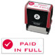 This rubber stamp design features the messages "Full Amount Paid", along with a decorative check mark icon and a line where a payment date could be written. It could be used to mark an invoice or bill as having been paid in full.