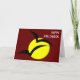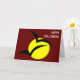 This Halloween card features a big bright yellow full moon with two black bats flying across it. The background is red creating the appearance of a blood red sky. There is customizable white text in the top right corner of the card that reads Happy Halloween.