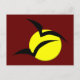 This postcard features a big bright yellow full moon with two black bats flying across it. The background is red creating the appearance of a blood red sky.