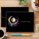 A beautiful white 3D looking full moon with ornate detail on it appears to be glowing brightly against a midnight black background. It is framed by a faux gold, magenta and blue crescent moon that has small twinkling stars around it and has a white template to the right of this generative content graphic. This chic and stylish illustration is ideal for a starry night quinceanera; a moon and stars special birthday party; a celestial engagement; an over the moon wedding; a gypsy fortune teller birthday theme party or wiccan upmarket event.