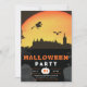 Full Moon Flying Witch Town Black Halloween Invitation
