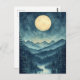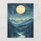 A serene view of a bright full moon illuminating a picturesque mountain landscape with a tranquil forest and a reflective lake under a starry night sky. Ideal for nature and night-themed visuals.