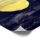Picture poster print of a night sky scene with full moon surrounded by clouds. Impressionist style color drawing of the moon with clouds.