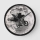 The image depicts an artistic design promoting a "Full Moon Cycle" event in Pringle Bay. The main focal point is a stylized full moon graphic with a silhouette of a person riding a bicycle across its surface, creating a dreamlike and whimsical scene. The moon's texture appears grainy or dotted, adding a sense of celestial atmosphere.