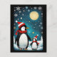 Full Moon Snowy Winter Santa Penguin Christmas Holiday Postcard