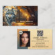 Business card featuring an artistic design with a wolf at full moon with a gate and raven. A template for your logo as well as custom QR code are added. Beautiful for a shamanic healer or anyone working with the mysterious world of animals and nature. (unlocking the gate ...)