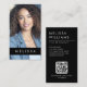 Black or any color, vertical business cards with you name and photo on the front and name, QR code, name, title and contact information on the back.