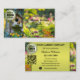 Business card featuring a blossoming garden with a cute birdhouse and bird. A logo and QR code template can be easily customized. You can either replace the social media icon with the icon of the media you most use, or copy and paste and replace if you need more icons (in the advanced editor). Beautiful for a business offering garden design and maintenance.