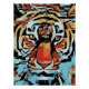A bold and energetic pop art illustration of a fierce tiger, reimagined with vivid colors and striking contrasts. This wild animal is depicted in a dynamic, graphic style, blending modern artistic expression with retro influences. The electrifying composition captures the tiger’s powerful presence while infusing a playful and contemporary aesthetic.