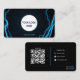 Striking business card design featuring a bold black background with vibrant blue lightning accents. The front allows you to showcase your custom logo and business field, while the back includes a QR code linking to any platform you choose, the phrase “Contact me” for a strong call-to-action, and space for your phone number, email, and website. Perfect for making a memorable impression.