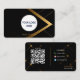 Sophisticated business card design featuring a sleek black background with elegant gold accents. The front showcases your custom logo and business field, while the back includes a QR code linking to any platform, the phrase “Contact me” for a strong call-to-action, and space for your phone number, email, and website. Perfect for professionals who want a modern, luxurious, and attention-grabbing presence.