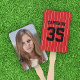 Keep cool and show your support for your baseball player at a game, graduation or any event with this photo hand fan featuring a baseball jersey stripes pattern on the front with colors that are fully customizable (To change the stripes color, click customize, select "ThinStripes1" layer and change the fill color. To change background color, select it to change). On the back you can add your photo.