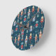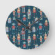 Fun 1950s Style Retro Robot Pattern Dark Round Clock