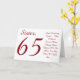 A white background featuring red text, on this 65th birthday greeting for a sister. My Funny Mind Greetings.