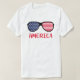 Cute Custom Americana T-Shirt featuring red, white, and blue glasses, and custom text that reads "AMERICA."