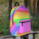 Fun and Bright Rainbow Stripes, Monograms on Pink Printed Backpack