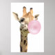 Fun Animal Design Pink Bubblegum Blowing Giraffe Poster