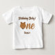 A fun bear first birthday t-shirt for your baby. The baby shirt has the word "One" in large letters with a bear face illustration as the first letter of the word and a brown and white color scheme. Simply, customize this shirt, add it to your cart, and happy birthday to your wonderful baby!