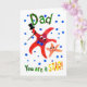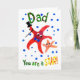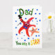 A Birthday Card for a father with a handpainted paper collage design of a dancing starfish and a young starfish saying, 'Dad, You are a Star!' See also matching gifts and apparel