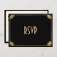 Fun Black Gold Art Deco Meal Options Wedding RSVP Postcard