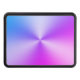This is a blue and purple brushed metal look trailer hitch cover. The brushed metal look is an artistic rendering. The design is radial.